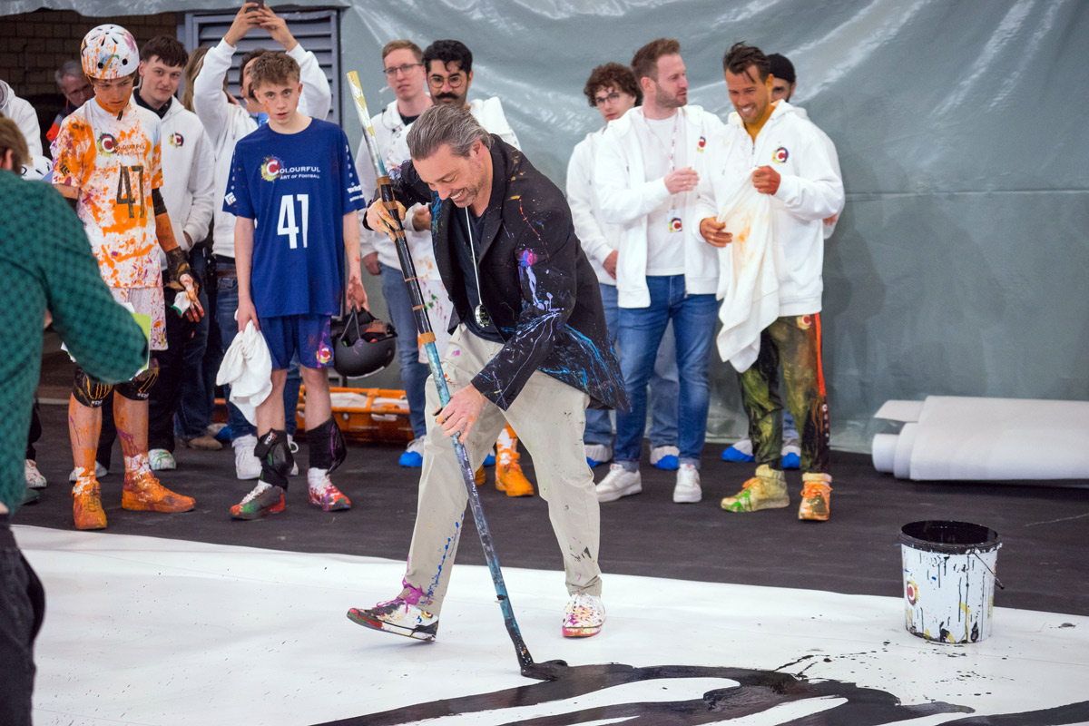Erleben Sie die beeindruckende Verschmelzung von Kunst und Fußball auf einer gigantischen Leinwand von 13.033 qm, geschaffen mit über 8.000 Litern Farbe.
